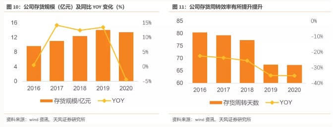 2020年存货规模达到13.46亿元(-4.39%),营收及盈利端增长同时,存货规模同比减少,客观上来看公司存货管理水平稳步提升。