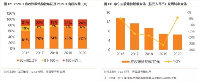 门店数规划:公司整体门店数较2019年底下降617家,其中李宁主品牌减少537家,李宁young减少80家;2020年受疫情影响,关店节奏加快,原有的开店计划也有所延迟。