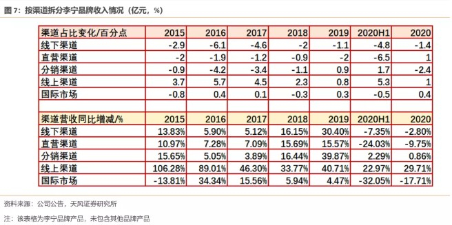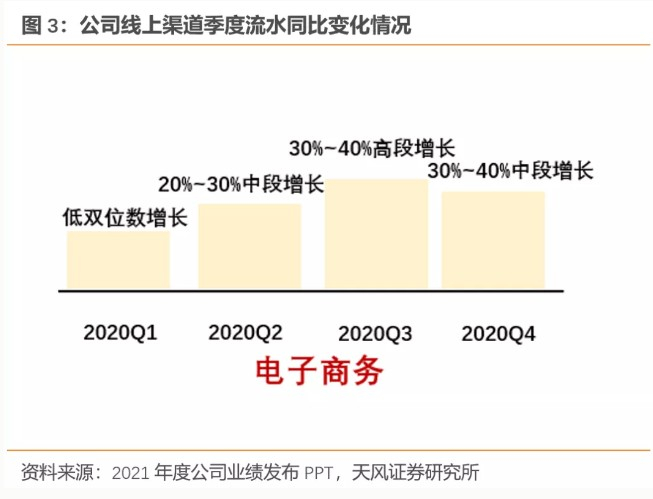 电商渠道维持高增速,在过去几年销售收入上升30%,营收占比升至29%,而2019年占比为24%;