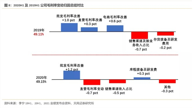 折扣幅度增加的市场背景下,加价率中单位数上升拉动批发业务毛利率改善,另外新和老产品组合推动批发的改善也推动公司整体毛利率改善,两个原因拉动批发业务的毛利率增长1.2pct。
