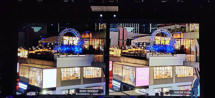 在发布会现场,雷军还让工作人员进行了实拍对比,在暗光环境下,小米11 Ultra的夜景拍摄效果的确要明显好于索尼微单,这部分原因也是由于手机采用了更多的计算摄影算法。