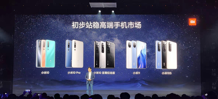 雷军在开场时说,这是小米有史以来最盛大的一次发布会。他再次提到了刚刚发布的财报,成立十年,小米2020年获得了2459亿元营收,同比增长19.4%。小米手机销量也重新回归全球前三。