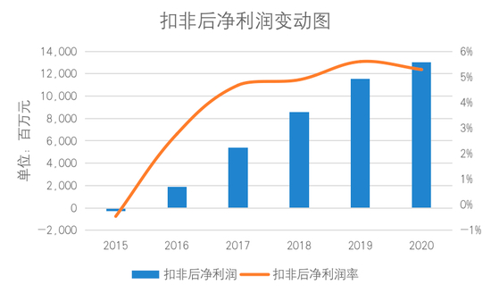 扣非后净利润率从2016年起也保持了稳定增长。得益于此,小米集团资产负债表数据非常健康,并且在2020年录得135.375亿元经营现金流净额。这些都为其后续开展业务提供了强有力的保障。