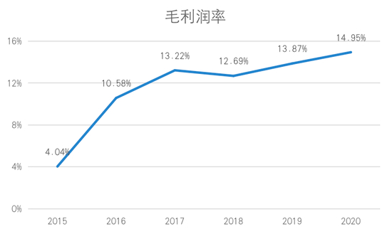 不过,上市的时候就被诟病的毛利润率低的问题没有得到很好的改善。2020年全年,小米集团的毛利润率为14.95%,仅比2018年高了2.3个百分点。