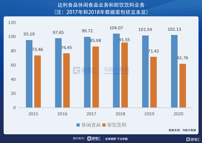 目前贡献公司主要收入的是休闲食品板块和即饮饮料板块,约占总营收的80%。在几大护城河的守卫下,尽管这两块的规模非常大了,基数很高,但仍然保持着稳健的发展。即使在2020年疫情的打击下,休闲食品依然维持了增长,虽然饮料业务受冲击影响多一点,但2020年下半年也已经恢复了增长。