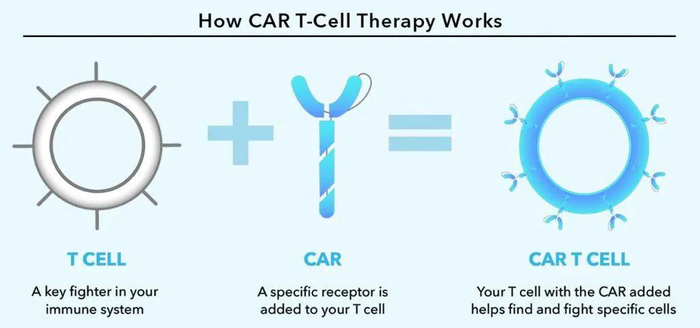 CAR-T细胞疗法也叫“嵌合抗原受体T细胞”疗法,这是一种近几年才兴起的免疫疗法,它可以通过增强人体免疫T细胞来抵抗癌细胞,T细胞在免疫反应中起着关键作用,从而能增强人体自身的自然防御能力。通过体外提取并改造T细胞后,使其具有精准识别和对抗癌细胞的能力,成为“治愈”恶性肿瘤的神器。