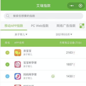 艾瑞3月亲子育儿榜集体上涨 亲宝宝、宝宝树、妈妈网占Top3