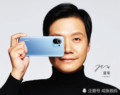 除此之外,有网友还晒出了之前雷军作为小米11代言人时的宣传海报,海报中雷军手持小米11,并用小米11遮住了一只眼睛,露出一只眼睛。