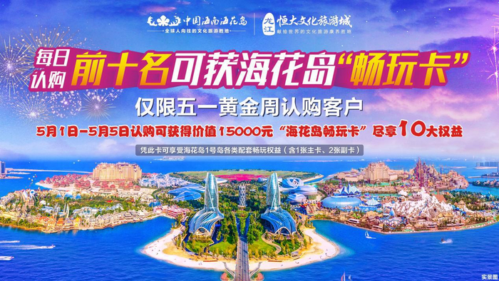 据了解,黄金周期间,龙江恒大文化旅游城&养生谷新品楼王强势加推,首期2万起,即可抢购建面约55-139㎡沿江装修美宅。购房更有价值15000元的海花岛畅玩卡送出!每日仅限前10名,送完即止!大手笔真金白银的回馈龙江百姓,引爆黄金周。