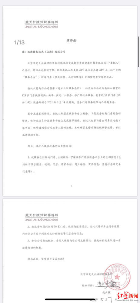 秀域给美团发的律师函