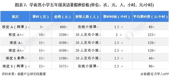 校外的补习机构按照小时的方式计费,不同的授课内容和授课规模收取的价格在50-500元/小时不等。以学而思小学五年级英语暑假培训班为例来看,网课的小班课教学为80元-90元/小时的价格,20人左右的面授小班教学已经达到120元/小时,如果是一对一的教学不论是网课还是面授,价格都将翻倍计算。