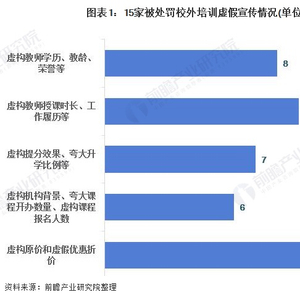 被罚款的15家机构中,涉及虚构教师学历、教龄、荣誉等情况的机构有8家,虚构教师授课时长、工作履历等有9家,有7家机构存在虚构提分效果、夸大升学比例等情况,6家机构存在虚构机构背景、夸大课程开办数量、虚构课程报名人数等;13家涉及虚构原价和虚假优惠折价。
