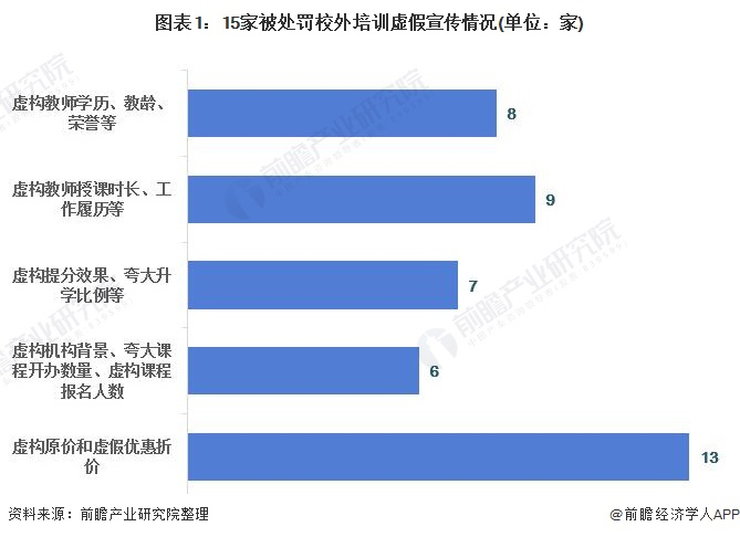2021年6月1日,国家市场监督管理总局召开新闻发布会,强化校外培训机构市场监管。在5月初对作业帮、猿辅导两家机构开展检查的基础上,市场监管部门对新东方、学而思、精锐教育、掌门1对1、华尔街英语、哒哒英语、卓越、威学、明师、思考乐、邦德、蓝天、纳思等13家校外培训机构进行重点检查。检查发现,15家校外培训机构均存在虚假宣传违法行为,13家校外培训机构存在价格欺诈违法行为。市场监管部门对15家校外培训机构分别予以顶格罚款,共计3650万元。
