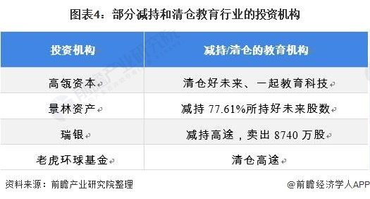 除了股价下跌之外,资本也开始陆续撤离教育行业。如高瓴资本披露的2021第一季度持仓情况显示,其在一季度清仓了好未来和一起教育科技;景林资产卖出持有好未来股数的77.61%;瑞银卖出8740万股持有的高途股数;老虎环球基金同样也再第一季度清仓了高途。