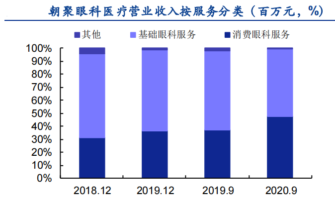 朝聚眼科主营业务包括消费眼科服务及和基础眼科服务,其中消费眼科服务为公司未来发展重点。