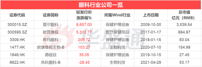 港股中的眼科公司尽管上市时间较A股相关公司短,但发展潜力也不可小觑。