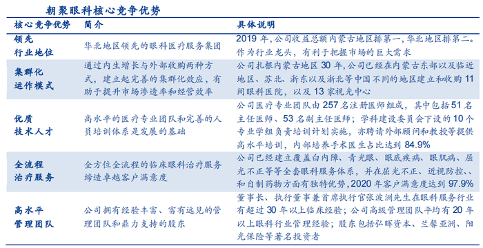 上述优势都有助于朝聚眼科在竞争者中脱颖而出,更好的把握医疗服务行业市场需求。