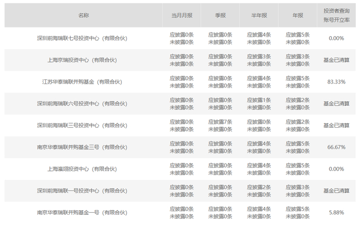 上海瀛翊投资中心(有限合伙)的基金管理人是华杉瑞联基金管理有限公司,不过从华杉瑞联基金管理有限公司管理的其它产品的投资者查询账号开立率来看,比如说旗下的江苏华泰瑞联并购基金(有限合伙)的投资者查询账号开立率为83.33%,南京华泰瑞联并购基金三号(有限合伙)的投资者查询账号开立率为66.67%。