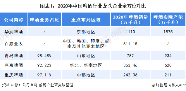 1、中国啤酒行业龙头企业全方位对比