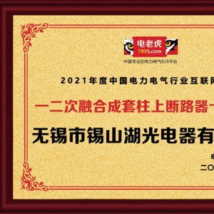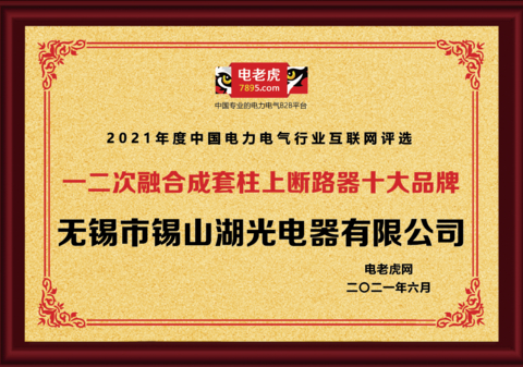 近日,无锡市锡山湖光电器有限公司参与了2021年度中国电力电气行业“十大品牌”系列评选活动,荣获“一二次融合成套柱上断路器十大品牌”称号。
