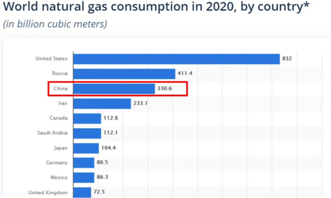 随着经济的发展和天然气在一次能源占比的逐步落实,2020年我国天然气消费量突破3300亿立方米,仅次于天然气管网高度发达的美国和天然气资源大国俄罗斯,位居世界第三位,甚至占到整个欧洲天然气市场消费总量的六成以上。