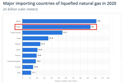 此外,根据能源咨询公司Rystad Energy的预测显示,2021年,日本LNG进口量预计约7510万吨,而中国约为7550万吨。这意味着,中国今年有望反超日本,成为全球第一大LNG进口国。