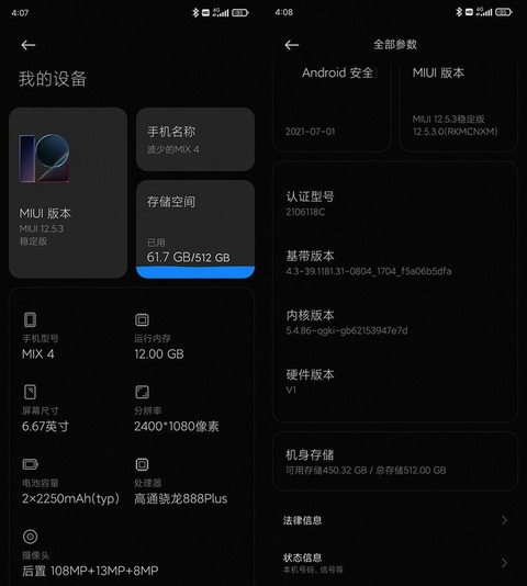 系统方面,这次MIX 4搭载的是最新版的MIUI 12.5.3系统,而米粉们期待已久的MIUI 13系统并没有出现在MIX 4上。雷军此前在小米社区互动平台上已经告知,MIUI 13系统还需要继续打磨优化,预计是要等到今年年底才正式亮相。