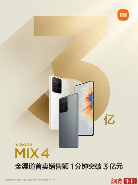 原标题:小米MIX4首销一分钟售三亿:货源吃紧 开售即售罄 来源:网易手机
