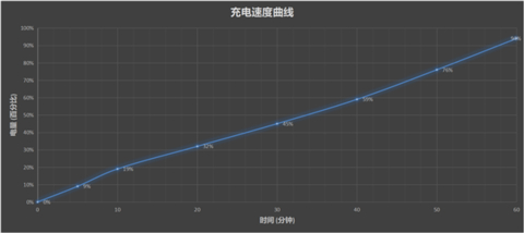 在我们的实际测试中,30分钟充电45%,60分钟充电94%,这对8600mAh的电池来说是一个相当快的速度。