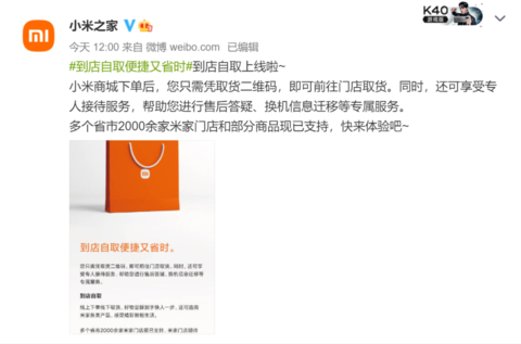 买东西更方便了!小米之家上线到店自取服务:线上下单线下取货
