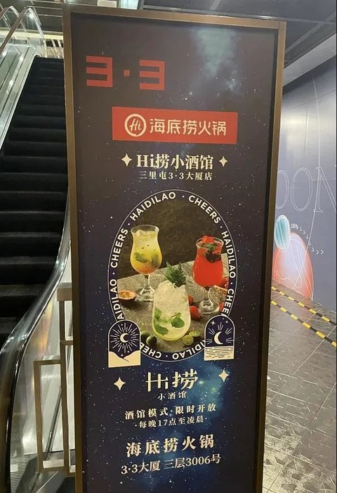 海底捞这家小酒馆,开在位于其北京酒吧业态集中的三里屯门店内,取名为“Hi捞小酒馆”。