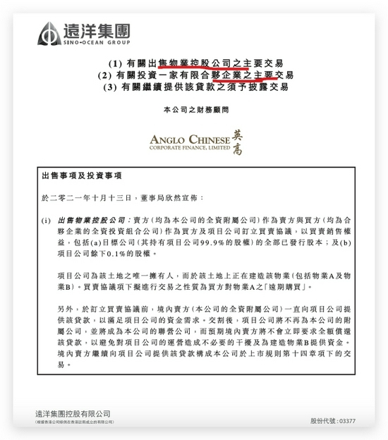 公告指出,远洋集团一直实施轻资产战略。出售事项是进一步加强此战略的一环,同时增加股东回报。