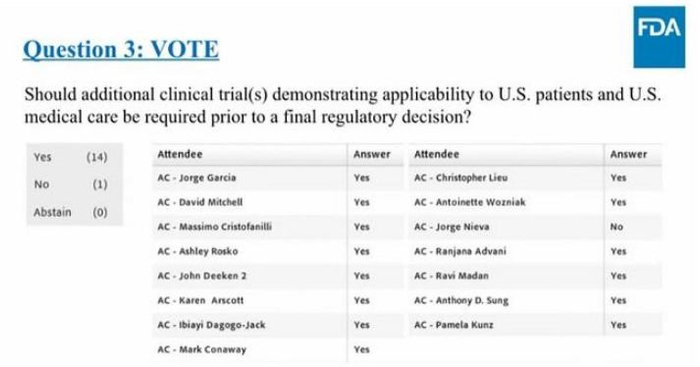 FDA肿瘤药物咨询委员会投票结果