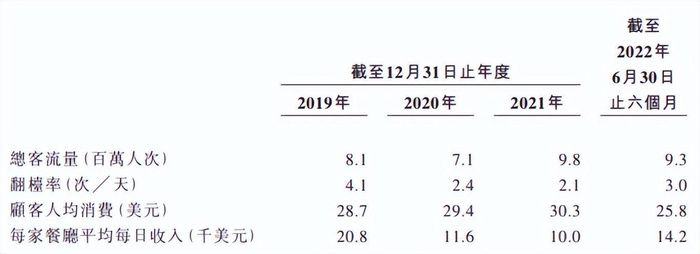 另外,特海国际的翻台率由2019年的每天4.1次减少至2020年的每天2.4次和2021年的每天2.1次。随着新冠肺炎疫情受到控制,截至2022年6月30日止六个月,翻台率回升至每天3.0次,但不及2019年的表现。