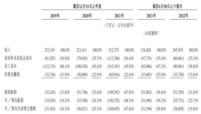 此外,特海国际的员工成本占比较高。于2019年、2020年、2021年和2022年上半年,特海国际的员工成本分别占总收入的48.1%、45.4%、45.9%和36.8%。特海国际在提示风险时表示,劳工成本及工资上涨的长期趋势可能导致该公司的溢利率及经营业绩下滑。