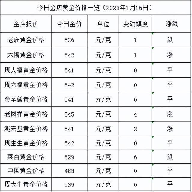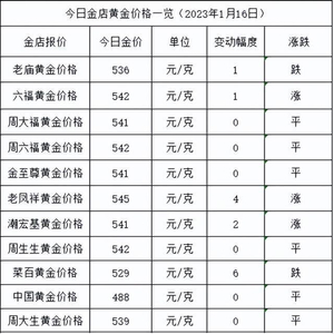 金价又涨了!2023年1月16日各大金店黄金价格多少钱一克?
