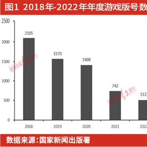 从年维度看(图1),2022年共有512个版号过审(12月包含44款进口版号),同比减少约31%。再往前追溯版号审批进度,2020年有1408个,2019年有1570个,停发9个月的2018年仍有2105个,总量呈现逐年减少并在去年达到低点。
