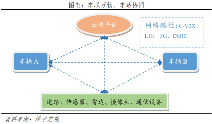 4.1 车联网:电气架构转型实现车联万物,通讯技术进步促进车路协同