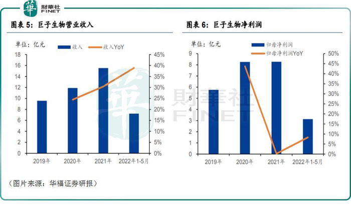 净利润方面,该公司2020年的归母净利润快速增长到了8.26亿元;但到了2021年,其归母净利润为8.28,同比仅增长0.2%,增速较之前大幅下滑,这主要是因为巨子生物期内加大了电商平台及社交媒体平台的营销费用投放。2022年1-5月,该公司的归母净利润增速有所恢复,但较2020年时仍有较大差距。