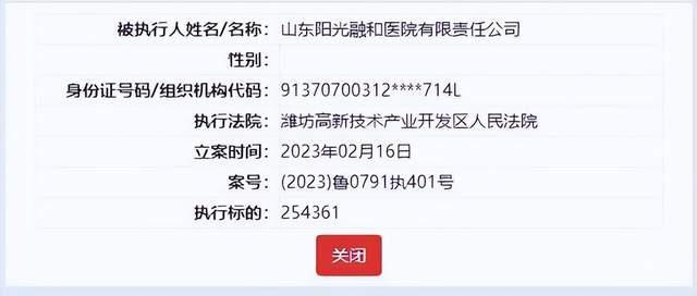 首先,今年2月16日,阳光融和医院因未按时履行法律义务而被潍坊高新技术产业开发区人民法院列为被执行人。【6】