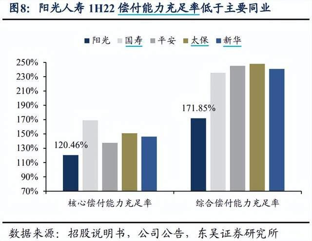 同时,阳光人寿两项偿付能力充足率在偿二代实施前后均明显低于主要同业。根据银保监会要求,偿二代规则自 2022年一季度偿付能力季度报告开始执行。