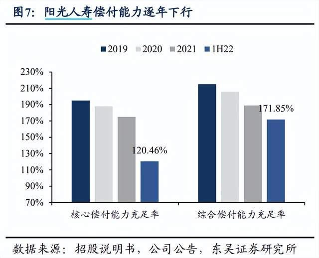 此外,阳光人寿偿付能力逐年下行,2022年上半年的偿付能力充足率低于主要同业。