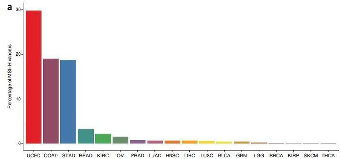 MSI-H/dMMR作为一个“泛瘤种”肿瘤标志物,在结直肠癌、子宫内膜癌、胃癌、肝癌等10余种癌种中均有表达。