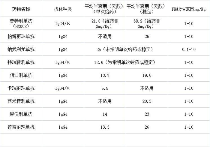 无论是与国内外适应症较多的PD-1,还是与同样获批MSI-H/dMMR的K药、恩沃利、替雷丽珠单抗相比,普特利单抗半衰期优势非常明显,患者用药依从性更强。
