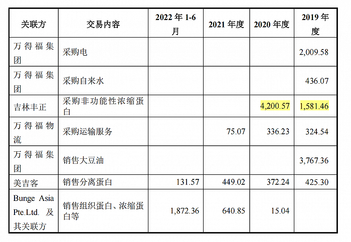 但彼时索宝股份仍与吉林丰存在关联交易,2019年、2020年索宝股份曾向吉林丰正采购非功能性浓缩蛋白,采购额分别为1581.46万元、4200.57万元。