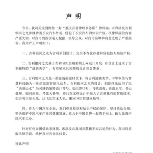 吉利对此做出声明回应,“原创设计,完全不存在抄袭和侵犯他人知识产权”。