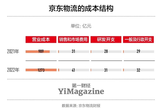 如果在物流企业之间审视京东物流的运营水平,2022年顺丰毛利率为12.5%,京东是7.5%,虽然比2021年高出2个百分点,但与顺丰仍有明显差距。