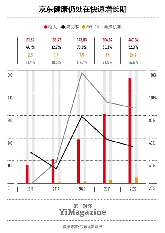 京东集团财报中被划为“新业务”的几个板块中,营收前景最稳的是京东健康。它也是当前京东旗下第三大的上市公司。2022年京东健康收入达到467亿元,且近3年都维持了超过50%的增长率。此外,今年3月宣布即将进入IPO流程的两个新业务,皆有“顺势而为”的色彩:京东工业是工业供应链技术与服务提供商,京东产发负责开发、管理和持有京东物流设施及其他房地产。现阶段它们与京东的零售主业都是上下游关系,且商业模式简单清晰。