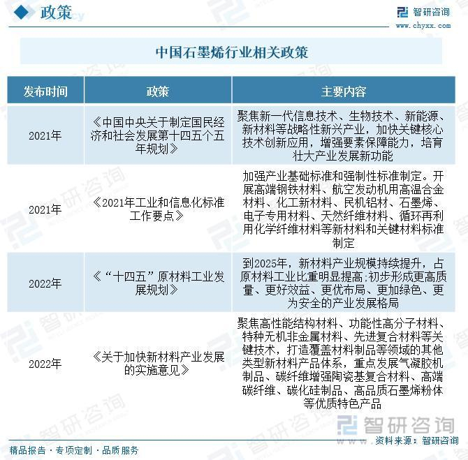 近些年国家不断推出石墨烯新材料的相关政策,依托对新一代显示器件、新能源等战略性新兴产业的发展政策,加速推动石墨烯新能源材料、电子信息材料的推广应用,助推石墨烯产业和新兴产业规模协同快速扩大。同时,国家产业政策和行业监管体系有效地促进了石墨烯新材料行业的健康发展,为企业正常经营提供了良好的发展环境,有利于行业企业巩固竞争优势。