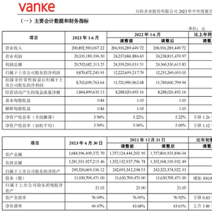 万科半年报称,2023年上半年,市场景气度短暂回升后再度下滑,行业形势依然严峻。面对快速变化的市场和错综复杂的经营形势,集团坚持稳健的经营策略,以确保安全健康为前提,持续强化各项业务的经营管理水平。集团继续保持行业领先的信用评级,截至报告期末,净负债率49.5%,处于行业低位;货币资金1221.8亿元,对于短期债务的覆盖倍数为2.7倍。